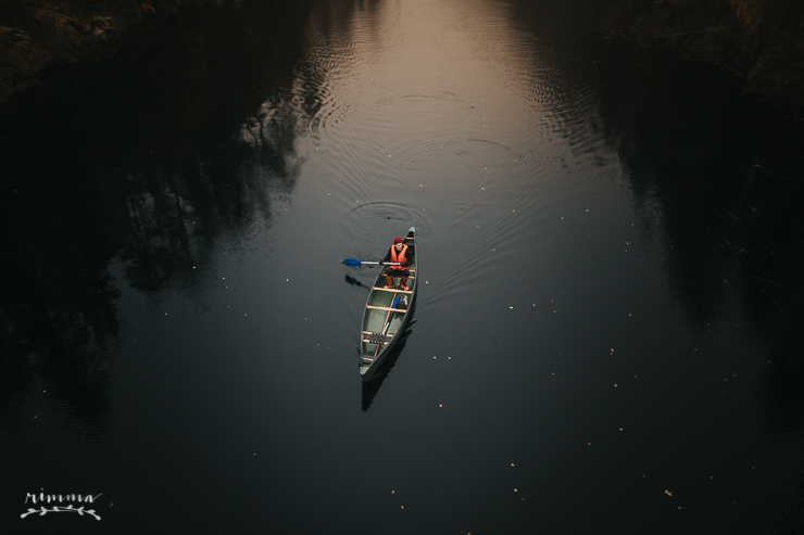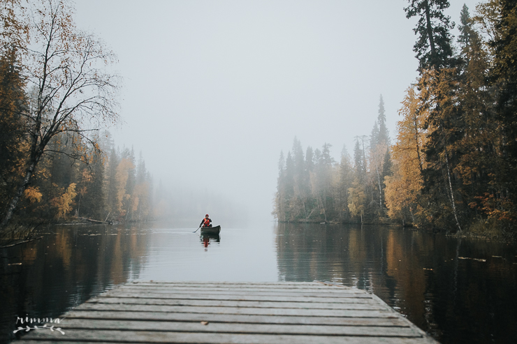 According to yesterday evening’s weather forecast, I was sure this morning would be foggy. And I was happy to notice I was right. The lake was as calm as our minds. We pushed our canoe to the water and started slowly floating along the largest canyon lake of Finland.