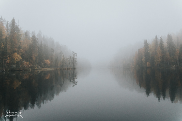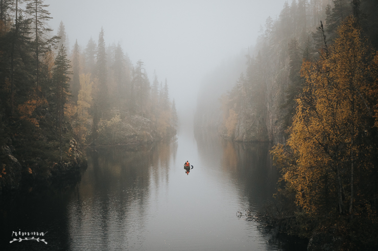 According to yesterday evening’s weather forecast, I was sure this morning would be foggy. And I was happy to notice I was right. The lake was as calm as our minds. We pushed our canoe to the water and started slowly floating along the largest canyon lake of Finland.