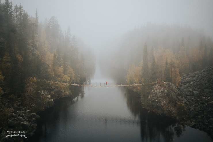 The silence is almost complete, if you don’t take in count the casual squeals of the Siberian Jay’s, or the splashing paddles. We don’t feel the need to talk – we just want to absorb everything out of this perfect moment. Our goal is to reach the suspension bridge on half way of lake Julma Ölkky, and carry on as long as we feel like. I notice the fish jumping and can’t help but wonder what lies in the depths of this 50 meter deep lake.